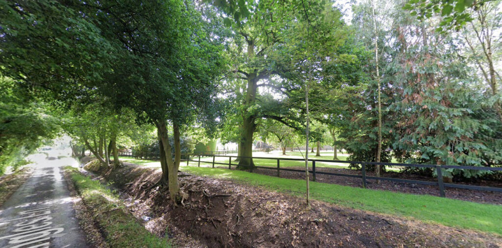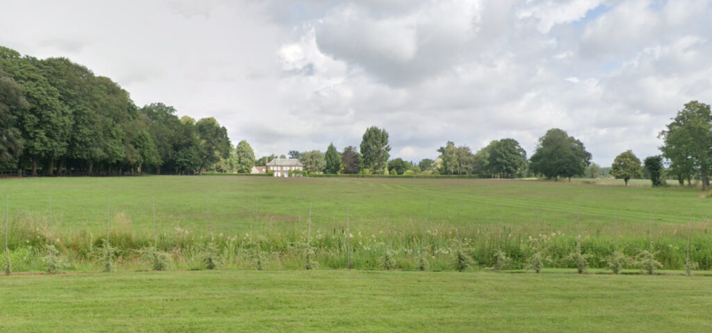 By 1838 there was parkland to the south, east and north of the new house. What appears to be a sinuously curving fence separating the gardens from the southern parkland is depicted on the Beyton tithe map. By this time the parkland extended over the parish boundary with Hessett to give the house far reaching views to the south where the park was dotted with freestanding trees and had a shelterbelt along the southern boundary with trees lining the western boundary along the road between Beyton and Hessett. At the intersection of the parish boundaries and fields there is a circular feature depicted as trees that survives to the present day. It is likely this historically acted as a boundary landmark before the establishment of comprehensive maps. To the east of the house, the northern and southern sections of parkland were separated by a further fence that led to a field named ‘Great Folly’ on the Beyton tithe apportionment and in Hessett ‘The Folly (part)’. The Hessett tithe map indicates a track leading eastward towards a wood beside the stream called ‘Summer House Plantation’. Although not shown on the Beyton tithe map, a continuation of this track towards Beyton House seems likely. Both reference to a folly and summerhouse are suggestive of elements of an earlier, designed landscape possibly from the seventeenth or early-eighteenth century. The northern parkland had a belt of trees giving privacy along the lane running east to west known as Cangles Lane.