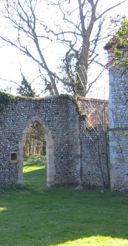 The former rectory of Claydon lies beside the Church of St Peter, which was made redundant in 1977 and now in the care of the Churches Conservation Trust. The rectory became a private residence by 1955 and is best known for its resident incumbent during the second half of the nineteenth century, the Revd George Drury, who was noted for his Anglo-Catholic sentiment and antagonising many of the local population. This culminated in the ‘Akenham Burial Case’ of 1878, the neighbouring parish that was also under George’s care. George built a surviving eccentric walled garden with towers that was said to be a Biblical allegory. Close by was an underground grotto. It is unclear how much of the wider rectory gardens were developed by George, with a gatehouse, the grotto and two viewing mounds probably of a date before his time. In the second half of the twentieth century the old rectory, gardens and walled garden became an office headquarters where a number of nineteenth century trees survive around the gardens, including a fine Cedar of Lebanon.