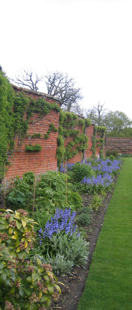 At the beginning of the eighteenth century a formal wilderness garden was laid out around a former manor house on the site of today’s Helmingham Hall. By the middle of the century the parkland was extended by the Vanneck family and soon after the house was rebuilt, with James Wyatt later contributing the east façade, garden orangery, temple and south lodges. In 1782 Lancelot ‘Capability’ Brown produced plans to ornament the landscape park, pleasure grounds and kitchen garden with its crinkle-crankle wall, and rebuild the stable block, although few were implemented at the time. In the mid-nineteenth century the garden on the south front of the house was remodelled. The mansion and parkland remained unaltered into the twentieth century and, passing through a number of hands, fell into disrepair and suffered two fires. In the 1990s Helmingham Hall Estate was bought by the present owners and an extensive restoration programme began on the mansion, the completion of many of Brown’s proposals and the addition of a new south garden to replace the formal Victorian terraces.