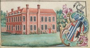 The 1774 survey of John Plampin’s estate gives an image of the mansion, then known as ‘Paddocks’, on a site south of the present house on lower ground close to the Chad Brook and in the area of today’s walled gardens complex. The large house depicted is a red brick Elizabethan-style building with two storeys plus attics.