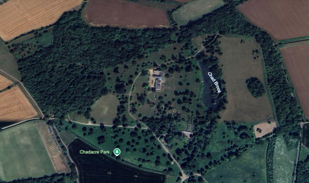Aerial View of Chadacre Park in 2025. (© 2026 Google Earth)