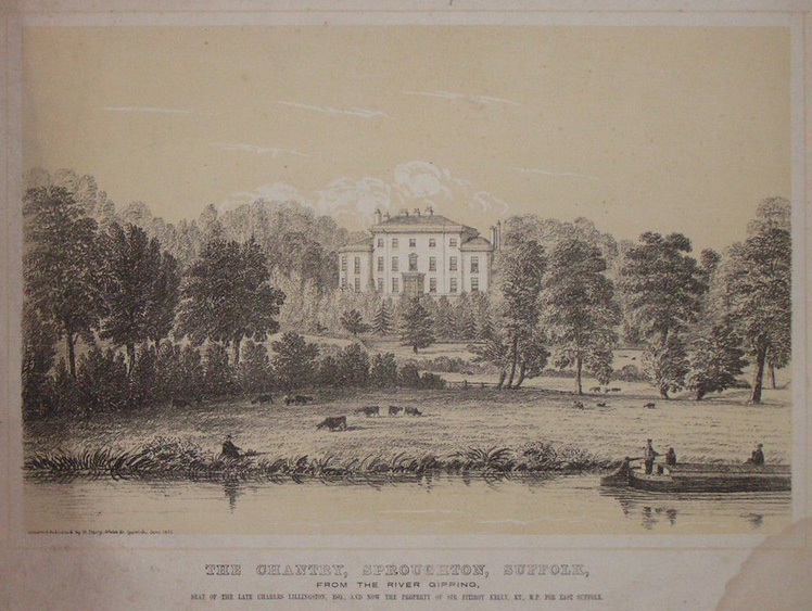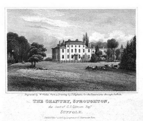 John Barker made changes to Edmund Vendris’s original c. 1700 house, but the character of the Chantry mansion is mainly eighteenth century, the result of substantial alterations during the latter part of that century by Metcalf Russell and the Collinson family. Engravings dated c. 1819 and c. 1829 show the north elevation of a central three-storey building topped by a parapet with a small central porch and two-storey wings to east and west. A large conservatory attached to the east wing, which was demolished in the 1930s, is said to have been added by Charles Collinson. Not shown on the c. 1829 engraving, this conservatory appears to have been built between 1830–36, before the estate was sold to Charles Lillingston.