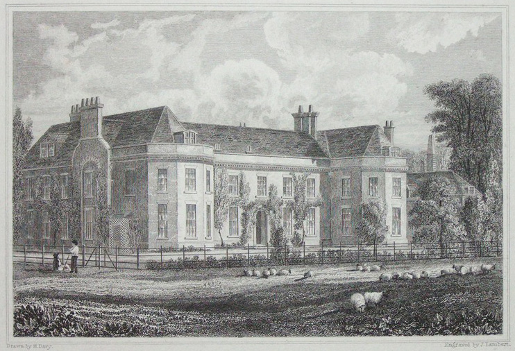 Henry Davy’s 1824 engraving of the east elevation of Gipping Hall giving views to the east and south of the surrounding parkland, although newly-planted trees and hedges are shown to the east. (From: Davy, H., Views of the Seats of Noblemen and Gentlemen of Suffolk, 1826).