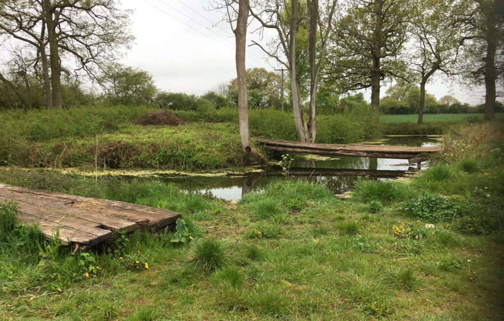 Moated site 200m west of Otley Hall. Scheduled Ancient Monument 1007685.
