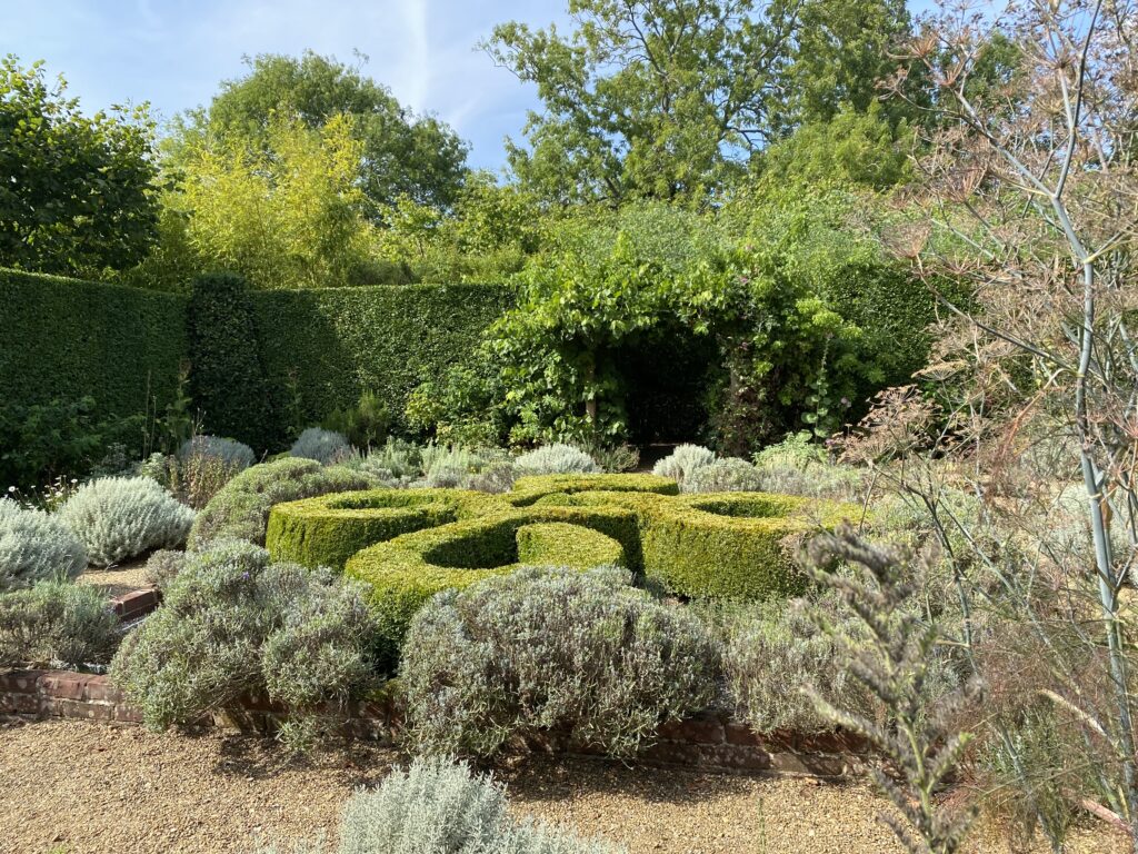 Whilst a chain of fishponds and extensive orchards once lay to the west of the house, the present 0.4ha (10a) garden developed over time, but is mainly the result of twentieth and twenty-first century design, firstly by Dorothy Sherston who bought Otley Hall in 1910. She employed the Edwardian architect Morley Horder to refurbish the house and landscape designer Francis Inigo Thomas to design a formal garden, although the plan was never realised. By the end of the twentieth century it was owned by Nicholas and Ann Harrap who created a Tudor-style garden by connecting two early fishponds to form an H-shaped canal feature to Francis Thomas’s earlier unrealized design. Under the direction of Sylvia Landsberg they also developed the knot garden, vine tunnel, herber and mown meadow, wildflower garden and woodland, in all covering c. 4ha (10a).