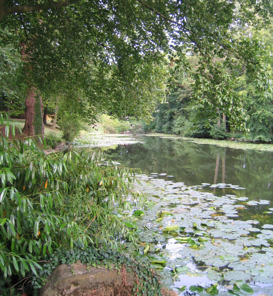 Following James Ireland’s death, an 1864 sales catalogue and advertisement in the Solicitors Journal mentions extensive pleasure grounds and gardens ‘sloping on the south to an extensive sheet of water, well stocked with fish’. This refers to the surviving large pond to the south of the Hall site, named on a number of maps as ‘fishpond’. At the time the steeply-sloping area immediately north of the pond was planted with a mix of coniferous and deciduous trees, the eastern portion possibly being an orchard. Today the planting survives, albeit in a slightly overgrown state but with little trace of the orchard, whilst the fishpond has been developed into an attractive lake with a smaller pond to the east.