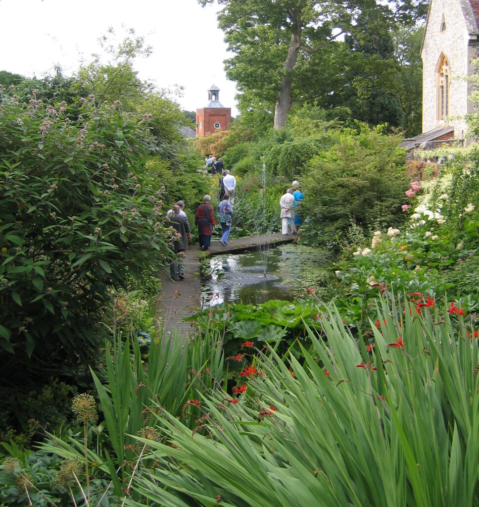 Late-nineteenth century maps show the garden with perimeter and cross-paths. It had glasshouses for a vinery and conservatory that are mentioned in the 1864 sales catalogue. There was a further glasshouse outside the south-west facing wall, with an area for frames and paths leading down to the ornamental lake and skirting the churchyard towards the pleasure gardens and Hall.